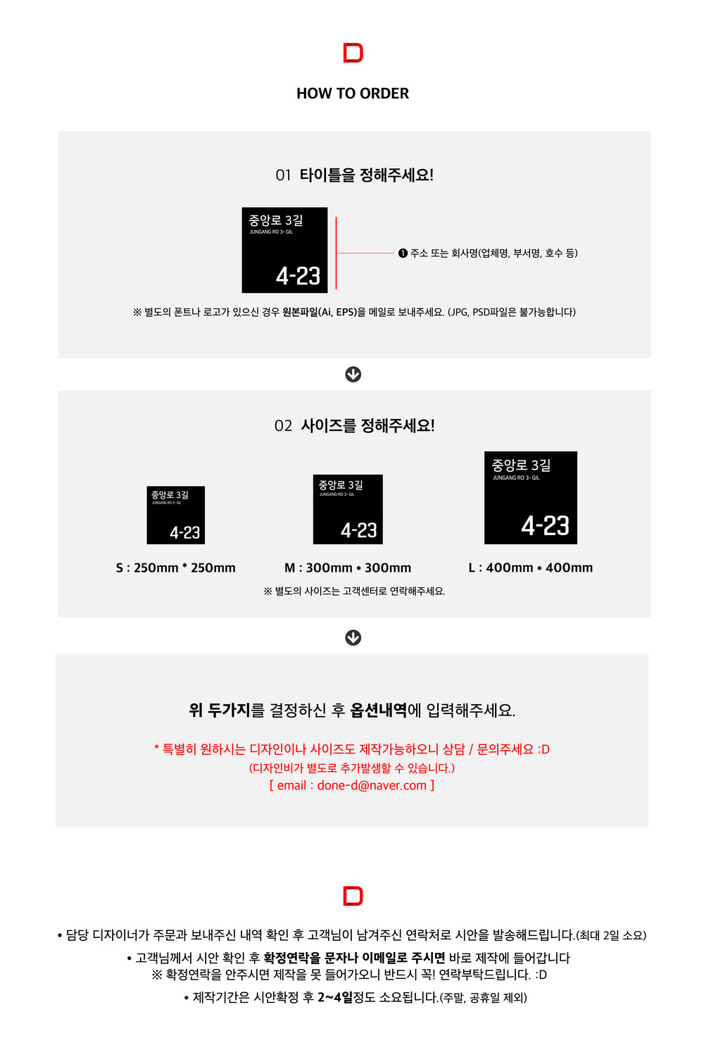 * 금속류 현판 제작기간은 시안 확정 후 5일정도 소요됩니다.(주말, 공휴일 제외)