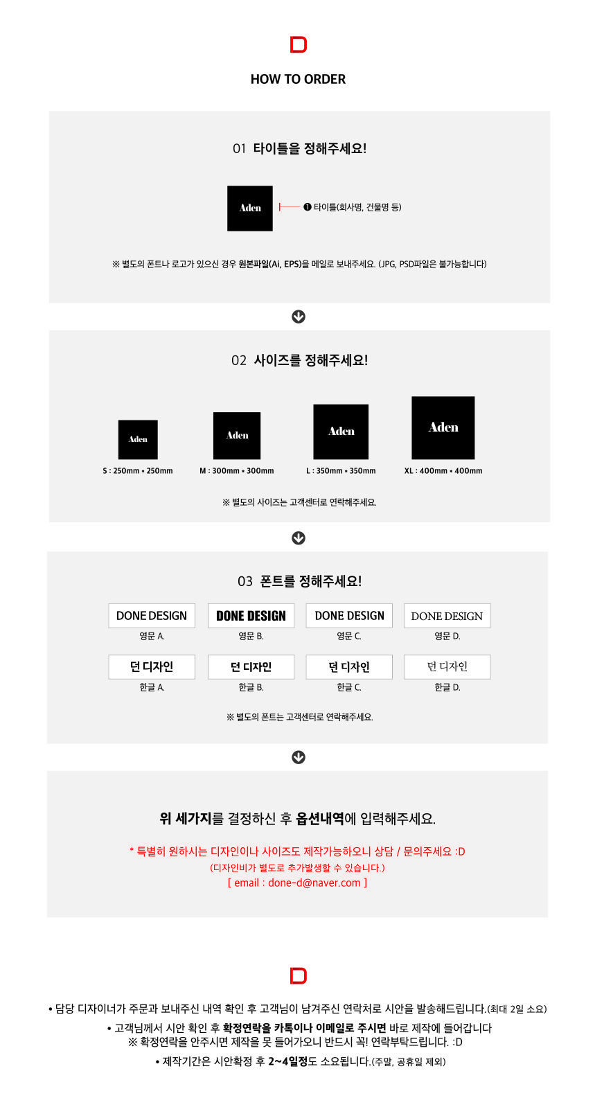 * 로고가 있으신 경우에는 원본파일(Ai, EPS)을 메일로 보내주세요(JPG, PSD 파일은 불가능) ▶ done-d@naver.com