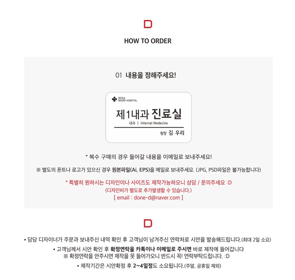 * 로고가 있으신 경우에는 원본파일(Ai, EPS)을 메일로 보내주세요(JPG, PSD 파일은 불가능) ▶ done-d@naver.com