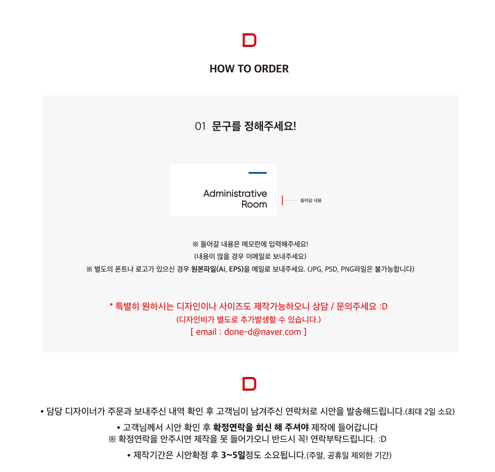 * 제작기간은 시안 확정 후 3~5일정도 소요됩니다.(주말, 공휴일 제외)