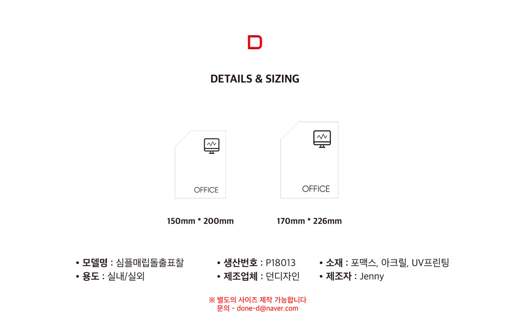 * 별도의 사이즈, 별도의 폰트도 제작 가능합니다.
