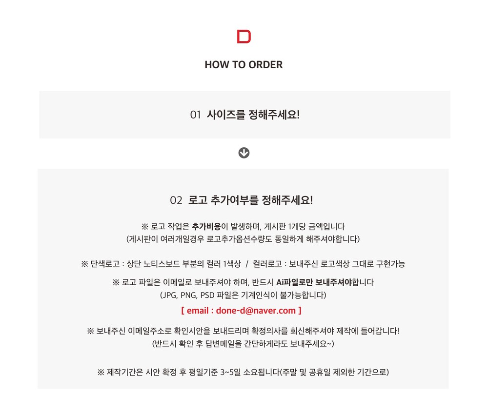 * 로고를 삽입하실 경우에는 원본파일(Ai, EPS)을 메일로 보내주세요(JPG, PSD,PNG 파일은 불가능) ▶ done-d@naver.com