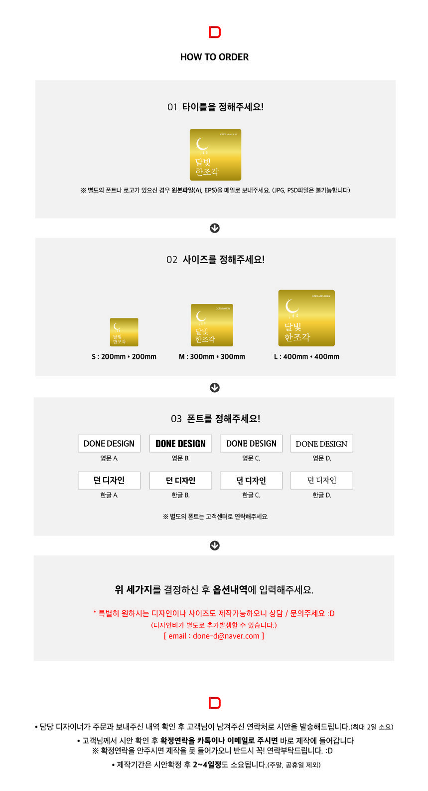 타이틀 / 폰트 / 사이즈를 결정하신 후 주문해주세요!