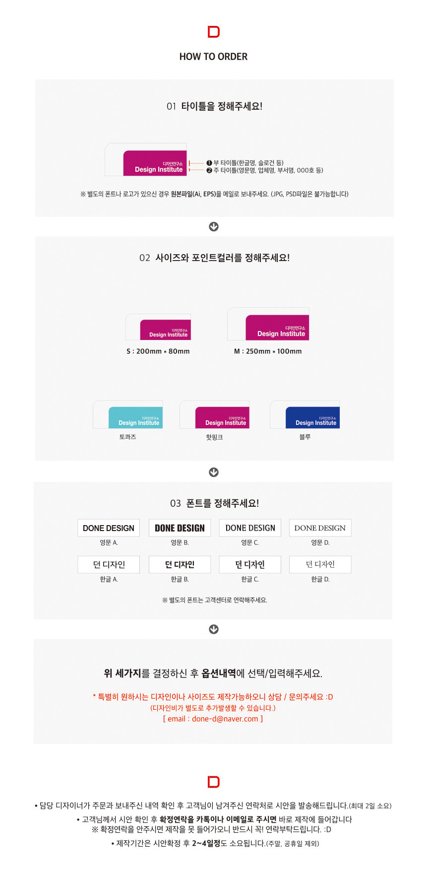 * 제작기간은 시안 확정 후 2~4일정도 소요됩니다.(주말, 공휴일 제외)
