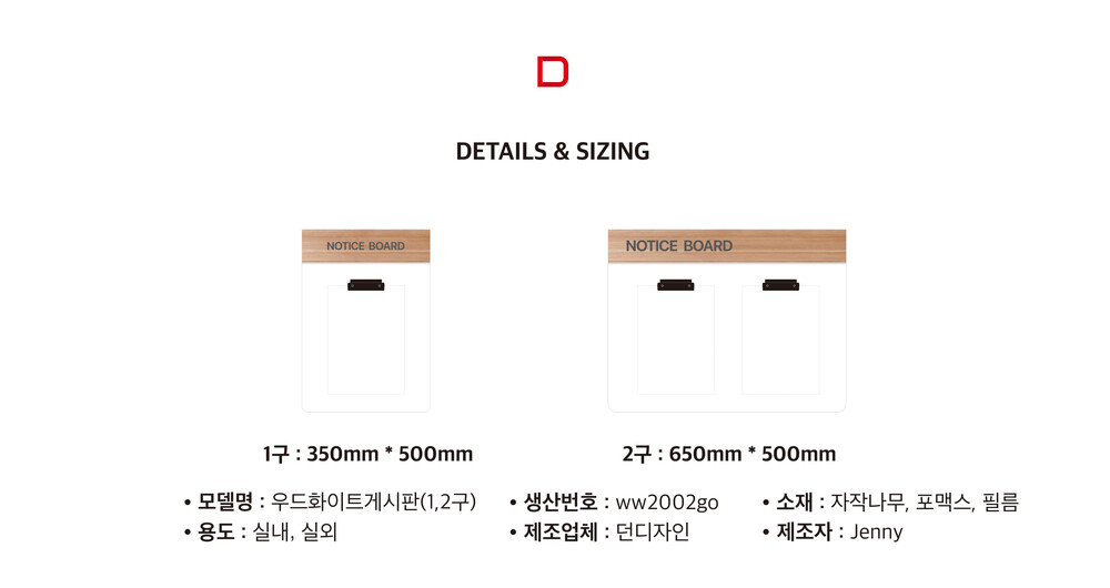 WoodBar White Notice Board(1~2칸)