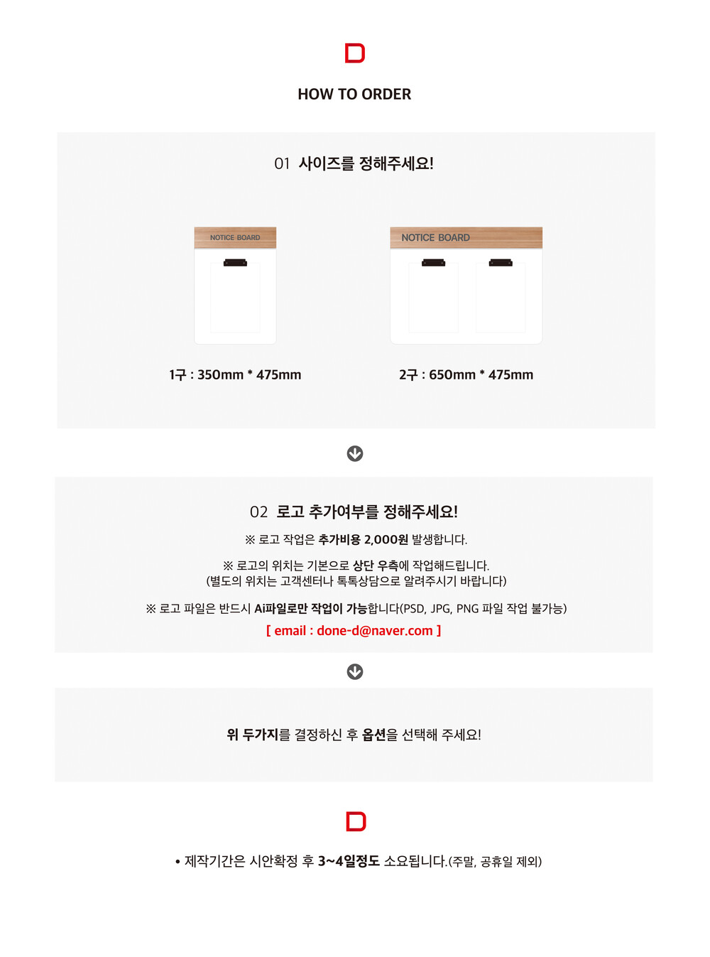 * 로고를 삽입하실 경우에는 원본파일(Ai, EPS)을 메일로 보내주세요(JPG, PSD,PNG 파일은 불가능) ▶ done-d@naver.com